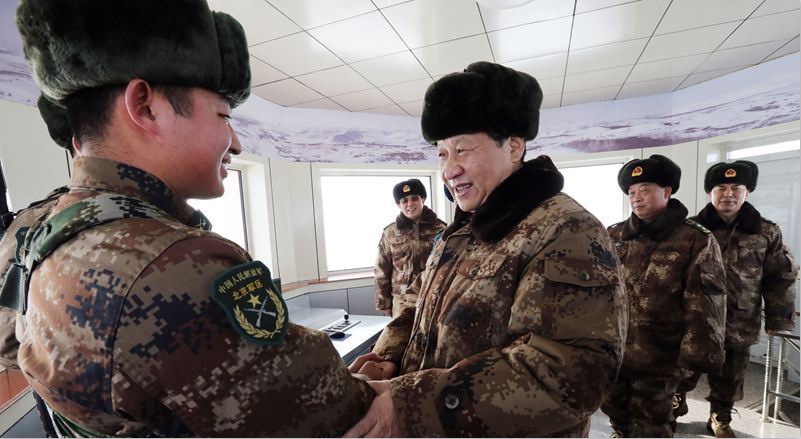 2014年1月26日,習近平主席冒嚴寒踏冰雪,專程來到邊防某部,親切看望慰問戍邊官兵,代表黨中央、國務院、中央軍委,向在祖國邊防堅守戰斗崗位的全體指戰員致以誠摯問候。